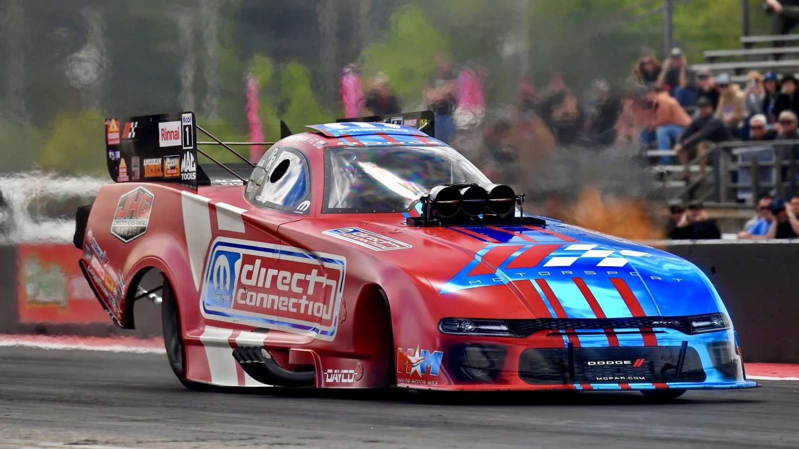At the NHRA New England Nationals, Tony Stewart, driving the Tony Stewart Racing Direct Connection Dodge Top Fuel car, made his fifth consecutive NHRA final appearance, maintaining his status as a top competitor. Although Stewart pushed the limits with speeds surpassing 330 mph, he narrowly lost by just inches to Brittany Force in an intense final race.